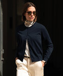 82% Organic cotton, 18% Polyamide. Certified organic cotton. Fine-gauge knit. Excellent shape retention. Feminine round neckline and elegant tone-in-tone buttons. Rib at neck, sleeves and bottom hem.